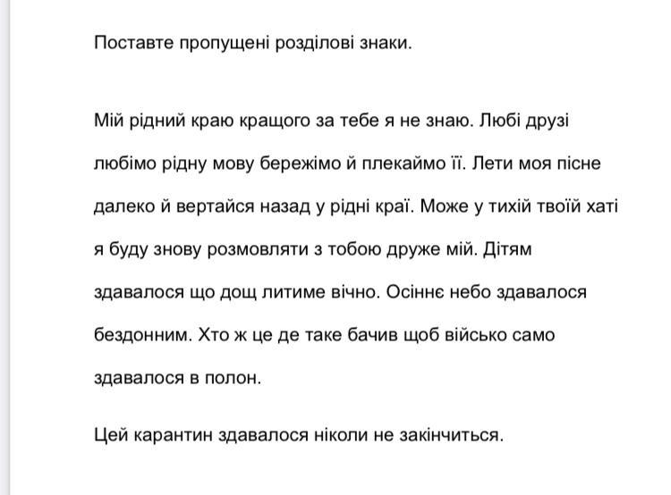 Мій рідний краю, кращого за тебе я не знаю. Любі друзі, любімо рідну мову, бережімо й плекаймо її. Лети, моя пісне, далеко й вертайся назад у рідні краї. Може, у тихій твоїй хаті я буду знов розмовляти з тобою, друже мій. Дітям здавалося, що дощ литиме вічно. Осіннє небо здавалося бездонним. Хто ж це де таке бачив, що вісько само здавалося в полон. Цей карантин, здавалося, ніколи не закінчиться.