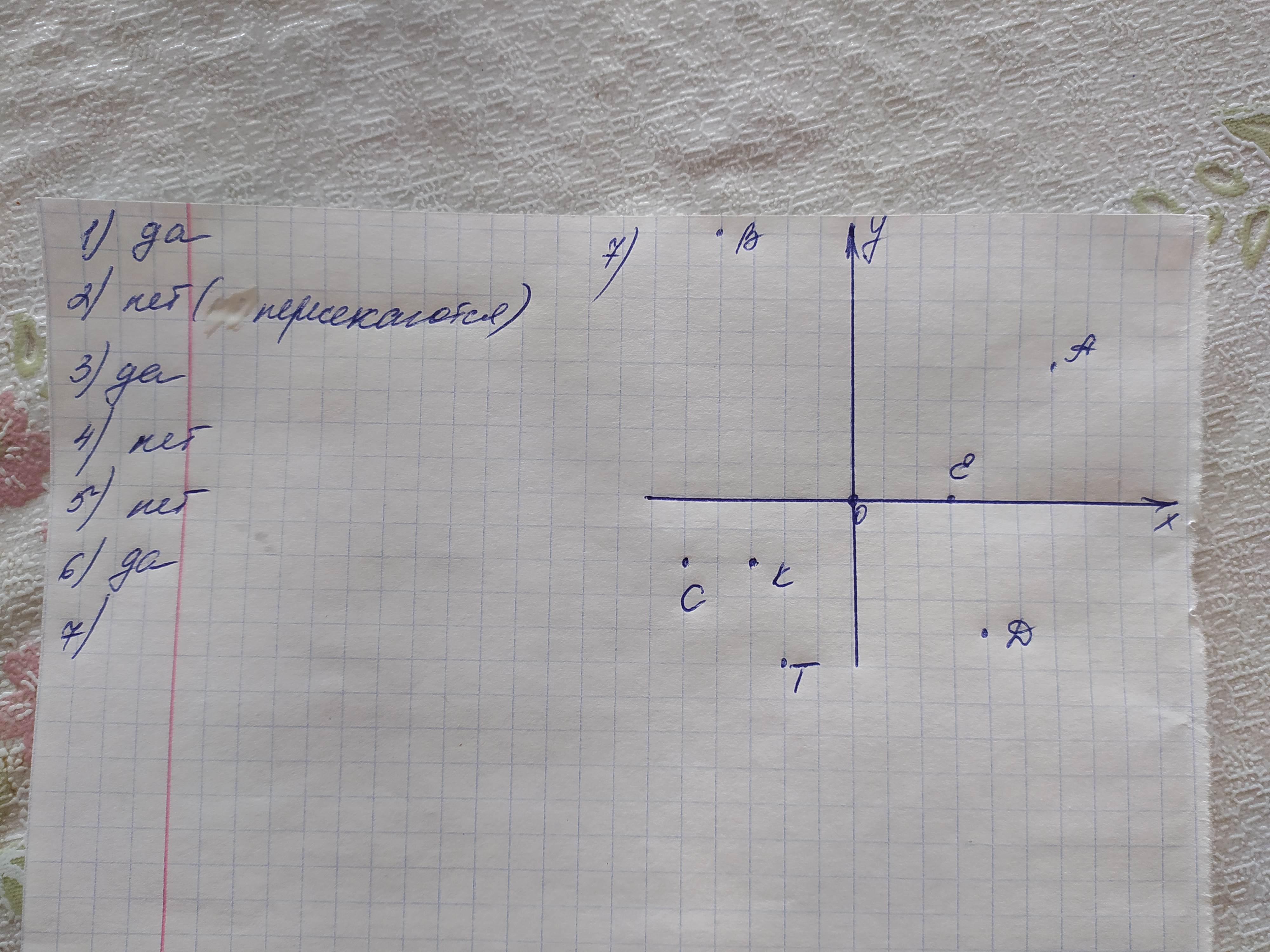 А (6, 4); В (- 4, 8); С (- 5 - 2); Д (4 - 4) Е (3, 0); К (- 3, 2); Т (- 2 - 5).