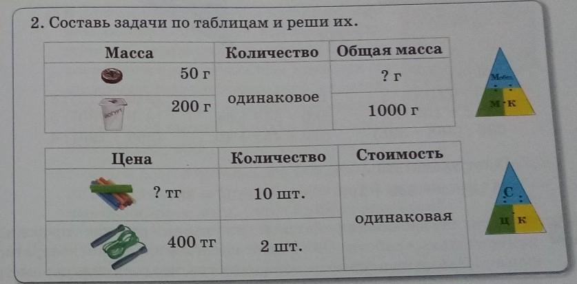 во второй задаче что бы узнать стоимость множим цену на количество, получаем 800, стоимость делим на количество получаем цену 800/10=80