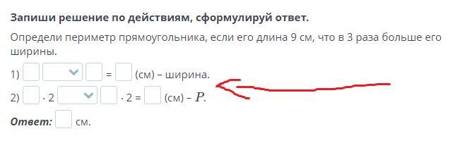 Определи периметр прямоугольника, если его длина 9 см, что в 3 раза больше его ширины.