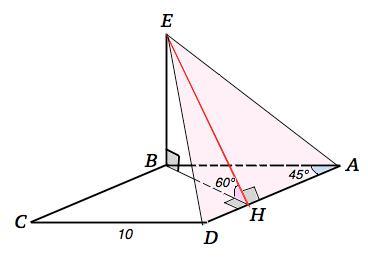 В ромбе АВСD АВ=10 см,<ВАD=45ᵒ, ВЕ перпендикуляр к плоскости АВС. Двугранный угол ЕАDВ равен 60ᵒ. Найдите расстояние от точки Е до плоскости АВС.