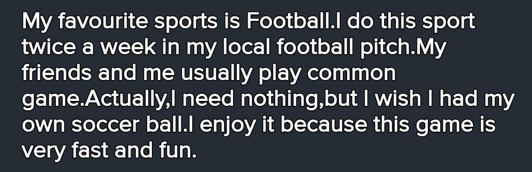 An international magazine is asking its readers to send in articles about their favourite sports. Using your answers the following questions write your article.