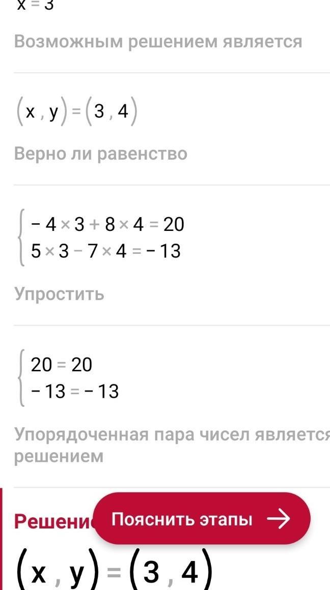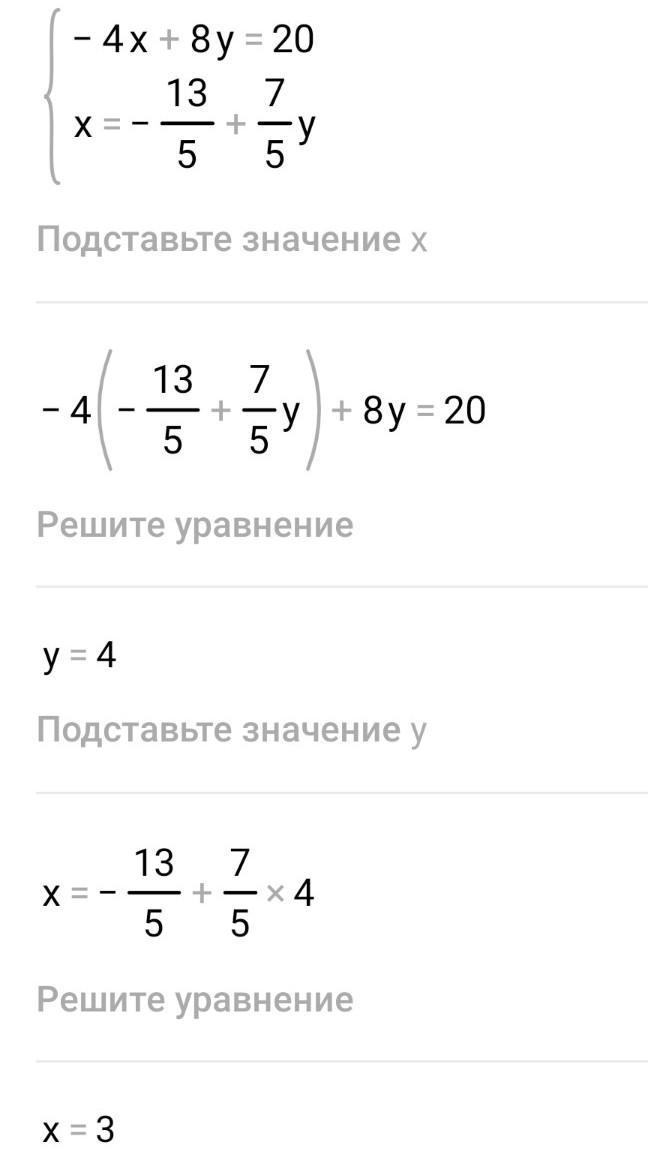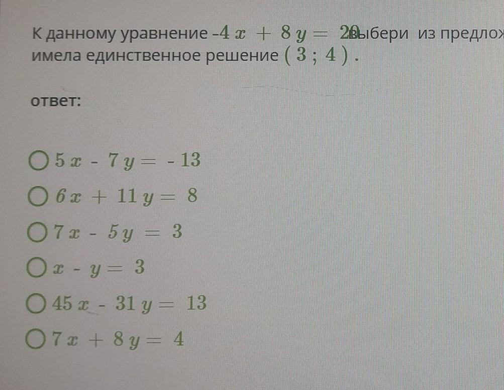 К данному уравнение -4 x + 8 y = 20 Выбери из предложенных уравнений такое, чтобы полученная система