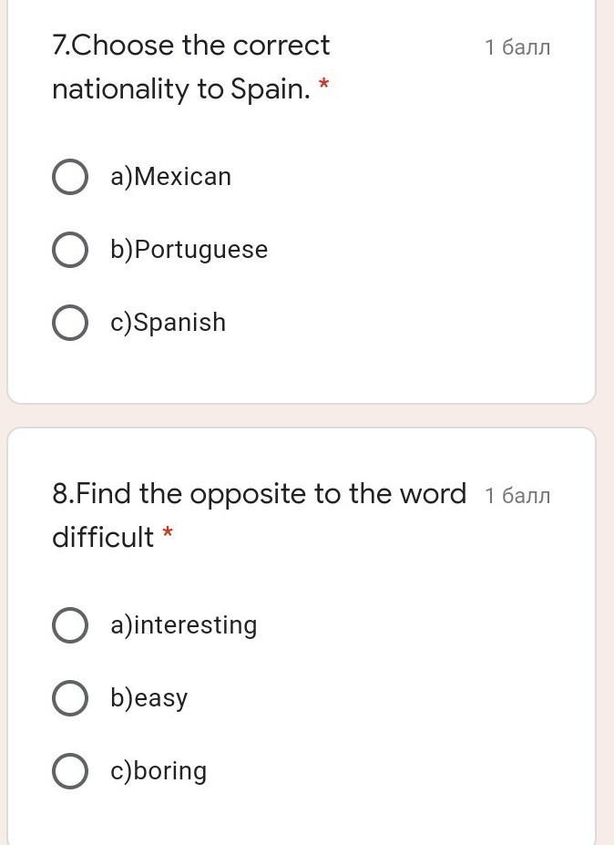 7.Choose the correct nationality to Spain. *