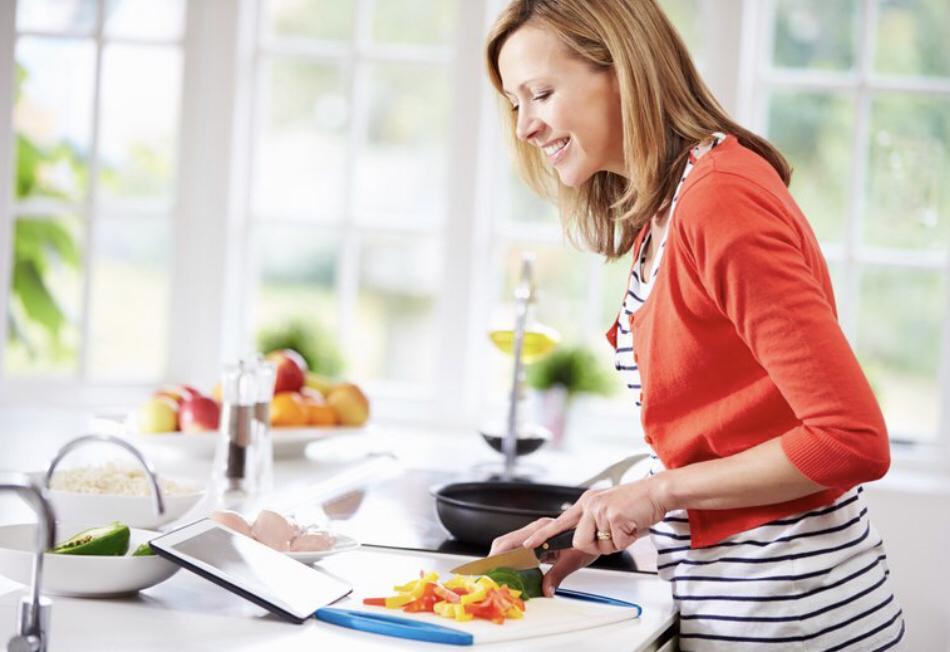 Ответ: This is the kitchen, on the street summer and sunny, on the picture 1 woman she smile and she cooking by gide salat