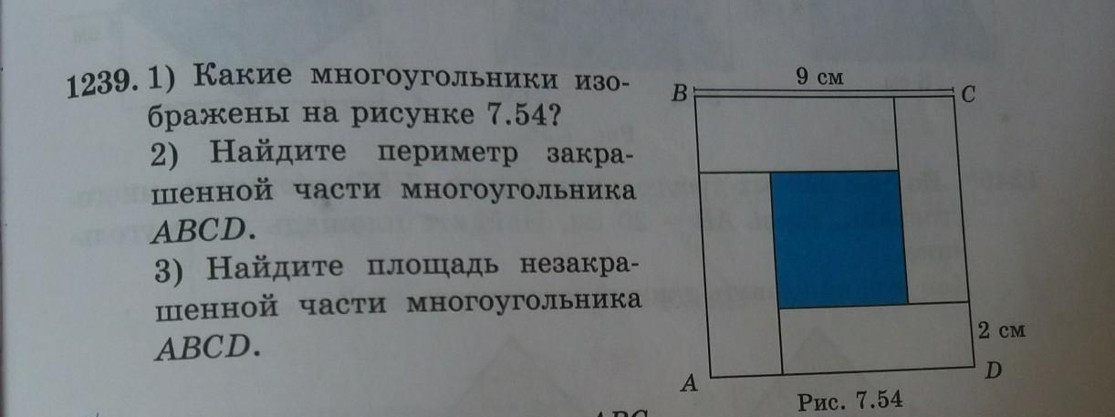 Сторона АВСD равна 9 см. Она состоит из длины незакрашенного прямоугольника и его ширины. Ширину мы знаем - 2 см.