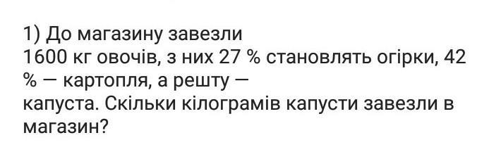 Дізнаємося % капусти. 100%-(27%+42%)=31%