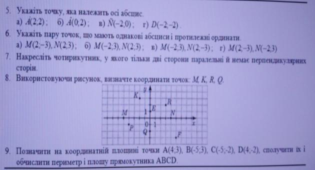 8) M(-5;0), К(-2;3), R(3;2), Q(0; -2)