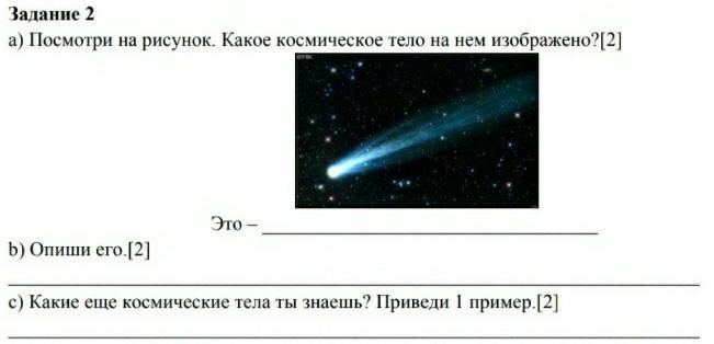 а) Посмотри на рисунок. Какое космическое тело на нем изображено э? [2]