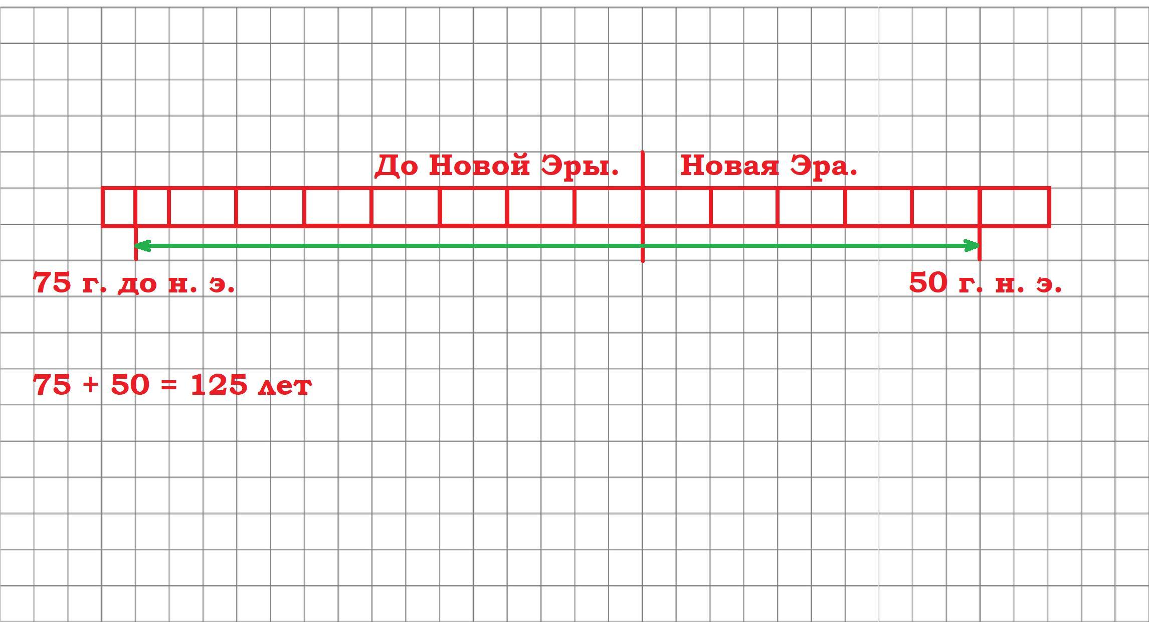 Какой год был раньше и насколько раньше: 75 г. ДО н.э. или 50 г. Н. э.? Отметьте даты на ленте времени, вычисления сделайте письменно.