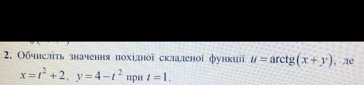Укр: Обчисліть значення похідної складеної функції u = arctg(x+y), де