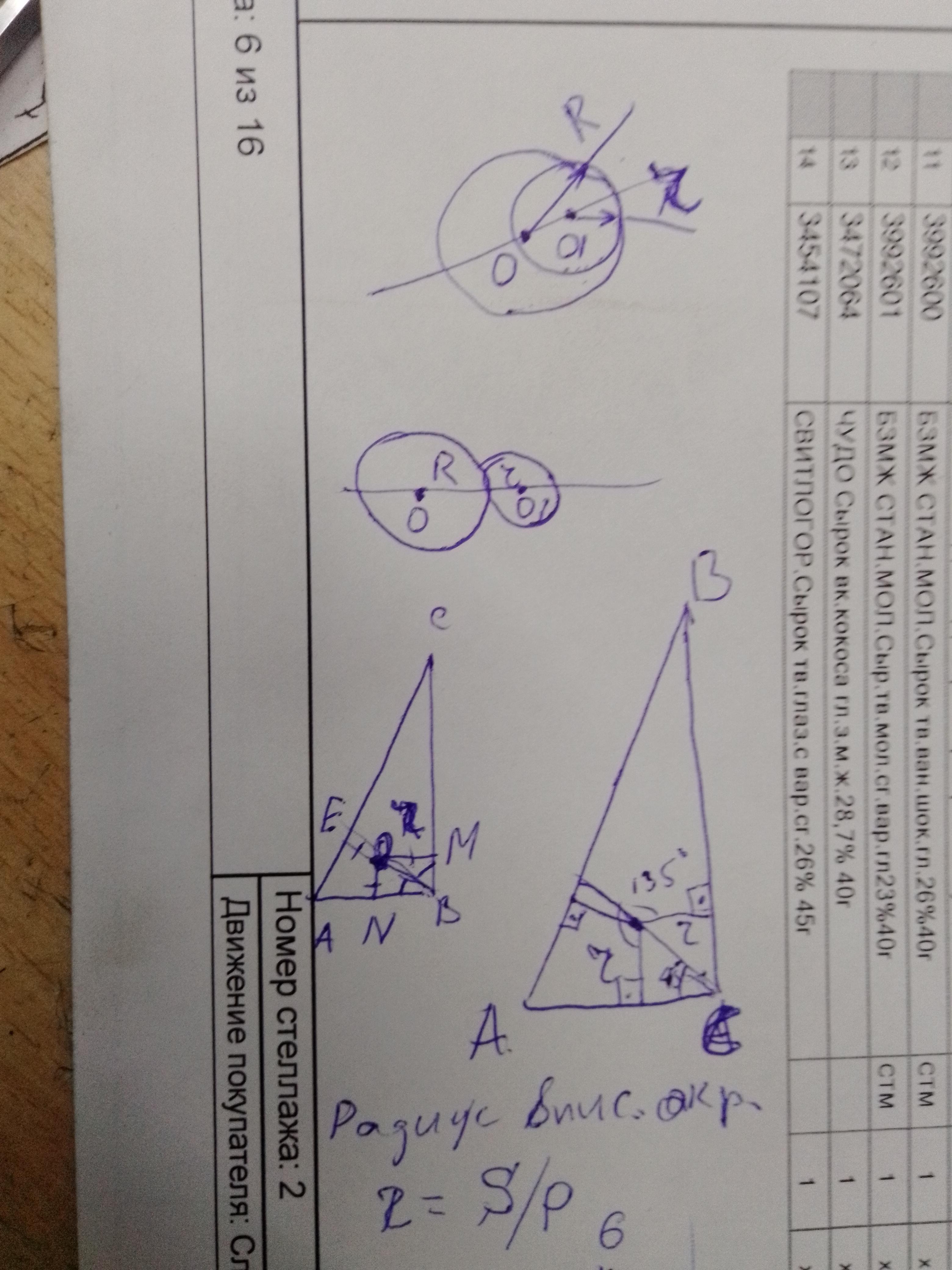 4) центр окружности, вписанной в∆ , находится в точке пересечения биссектрис данного ∆, r=S/p