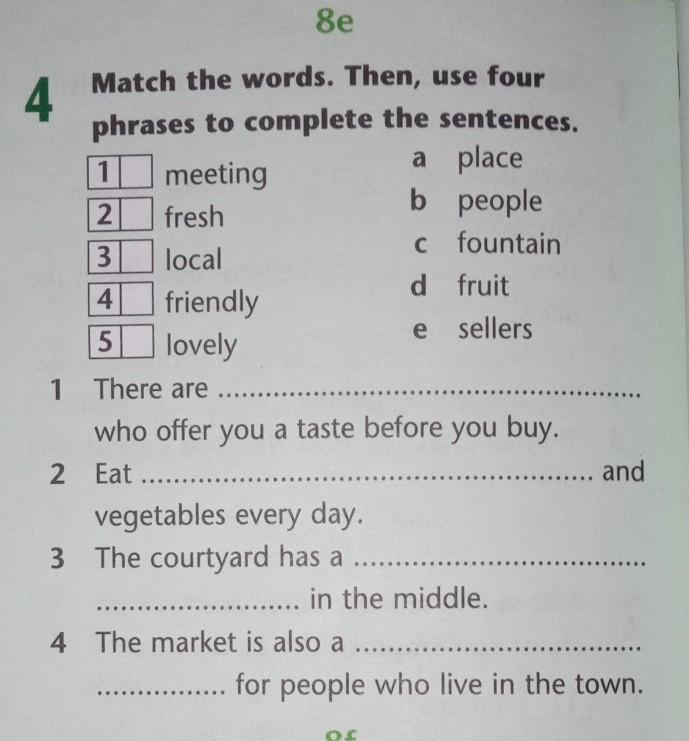 1)local sellers 2)fresh fruit 3)lovely fountain 4)meeting place