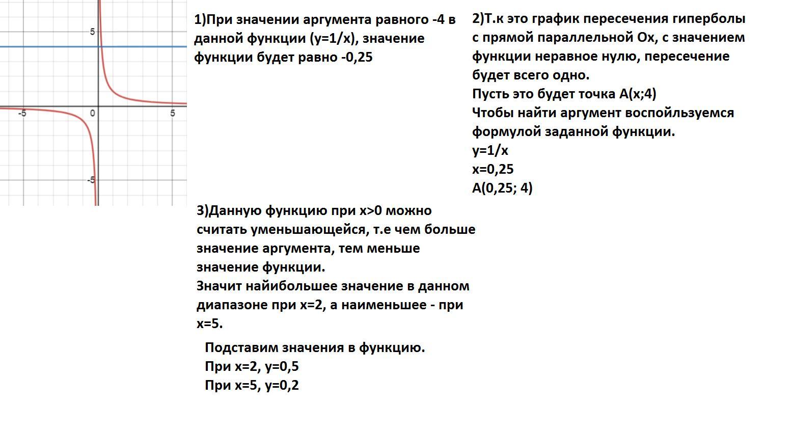 1) Значение функции, если значение аргумента равно -4;