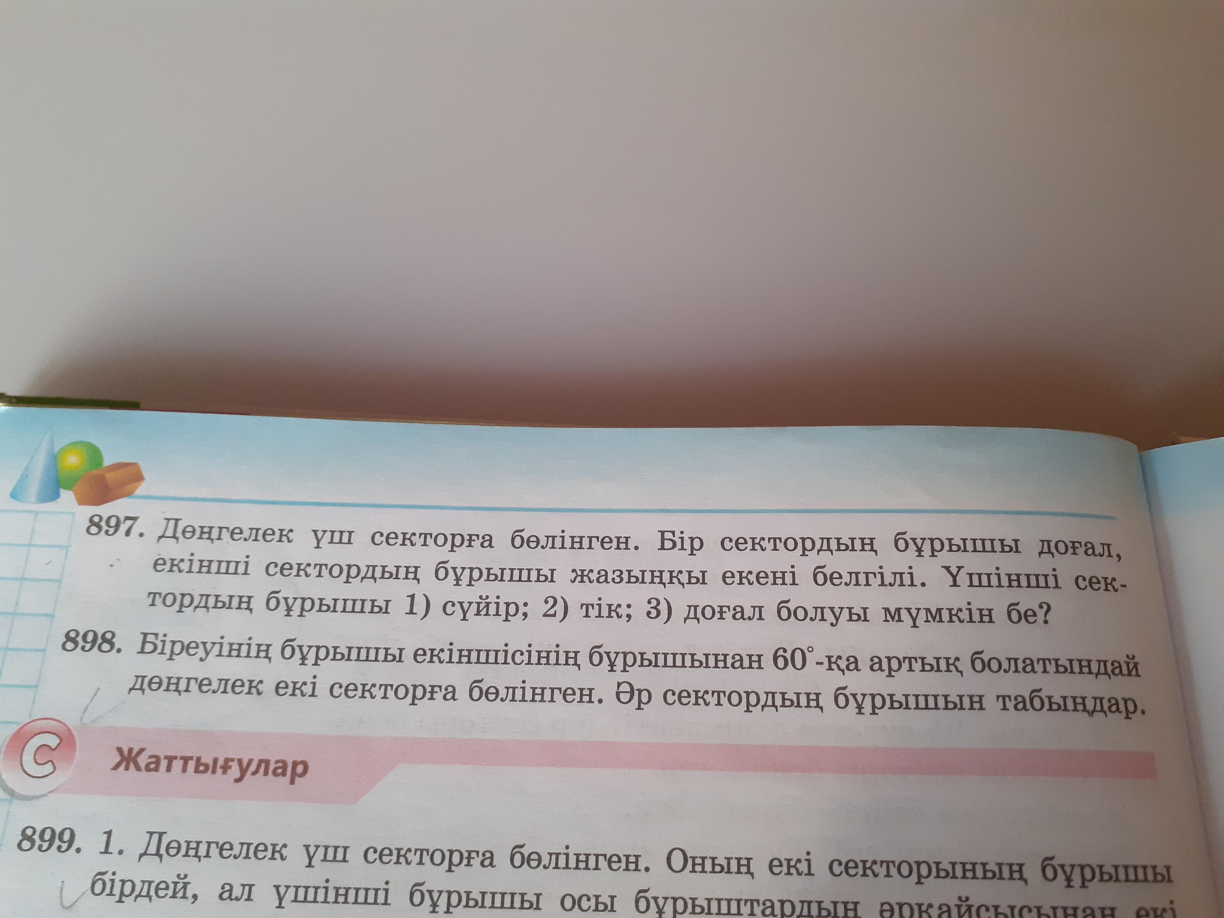 Перевод:Круг разделен на три сектора. Известно, что угол одного сектора тупой, угол второго сектора плоский.Может ли угол третьего сектора быть 1) острым2) вертикальным3) тупым?