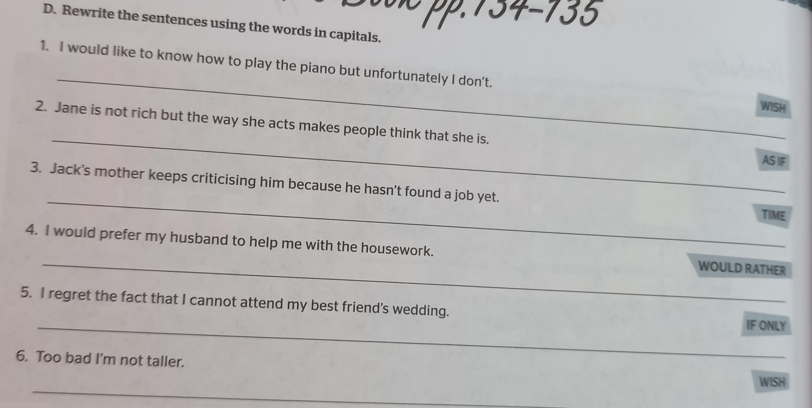 1 I wish I knew how to play the piano but unfortunately I don't.
