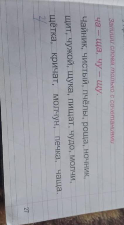 ча-й-ник; чи-с-тый; п-чё-лы; ро-ща; но-ч-ник; щи-т; чу-жо-й: щу-ка; пи-ща-т ;чу-до; мо-л-чи; щё-т-ка; кри-ча-т; мо-л-чу-н; пе-ч-ка; ча-ща