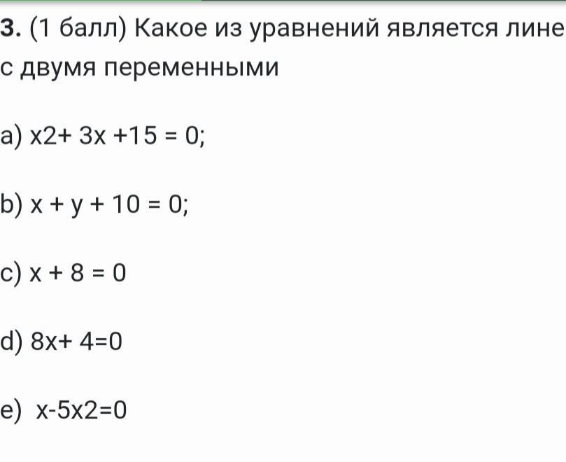3. Какое ищ уравнений является линейным с двумя переменными