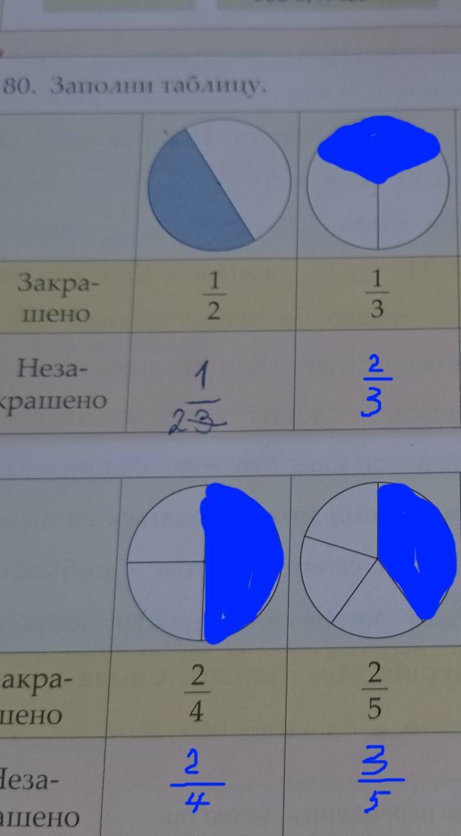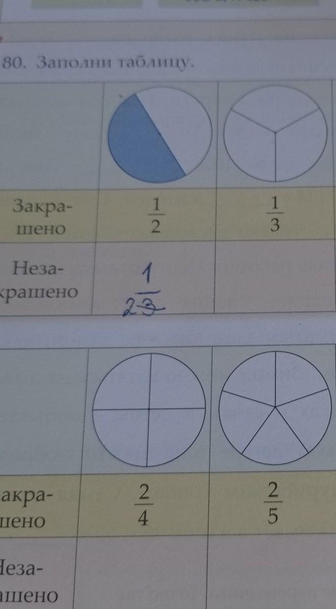 4)закрашено 2/5 не закрашено 3/5