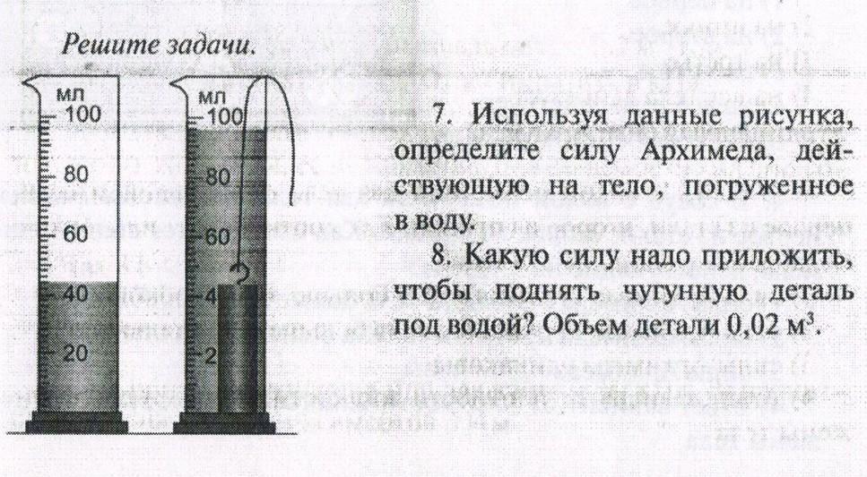 какую силу надо прилржить, чтобы поднять чугунную деталь под водой? объем детали 0,02м³.