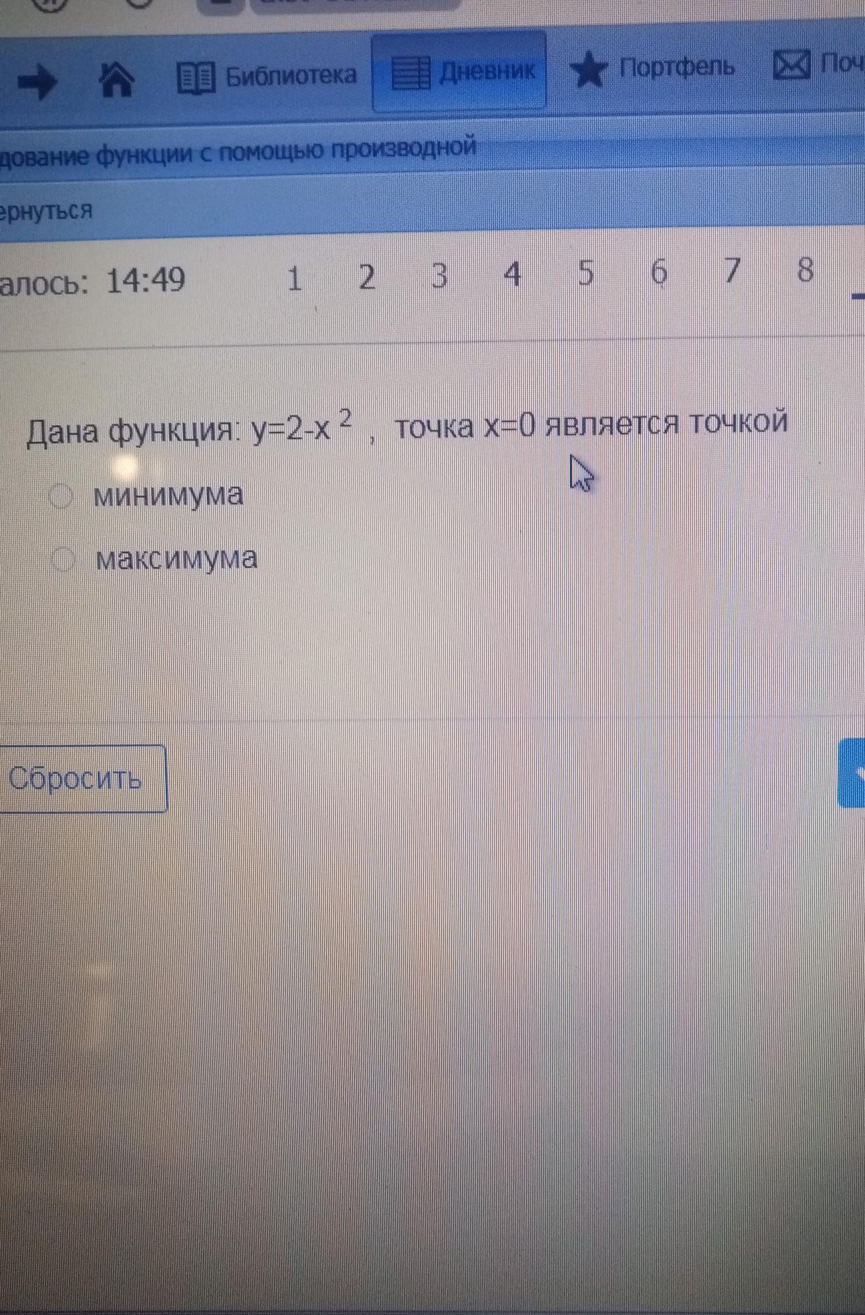 Ответ: Точка х=0 является точкой максимума