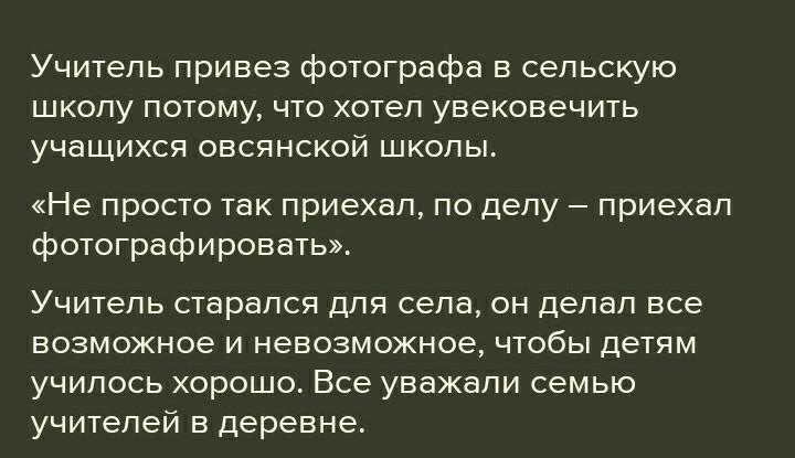 потому, что хотел увековечить учащихся овсянской школы. ... Учитель старался для села, он делал все возможное и невозможное, чтобы детям училось хорошо. Все уважали семью учителей в деревне.