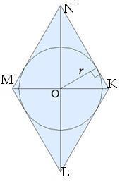 В нем угол OLK = 30°, т. к. диагональ ромба является биссектрисой и ВЫСОТОЙ ⇒ треугольник OLK прямоугольный, причем сс углом в 30° ⇒ 2 OK = LK; LK = 2дм