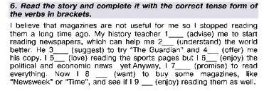 1. advised 2. understand 3. suggesting 4. offering. 5. love 6. enjoy 7. promised. 8. going 9. enjoy