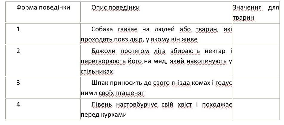 Ответ:1 собака защитник:защищает свой дом. 2 пчелы собирают мед на зиму чтобы выжить. 3мама шпак заботиться о своих детях принося еду в дом. 4 Петух заигрывает привлекает внимание курочек.