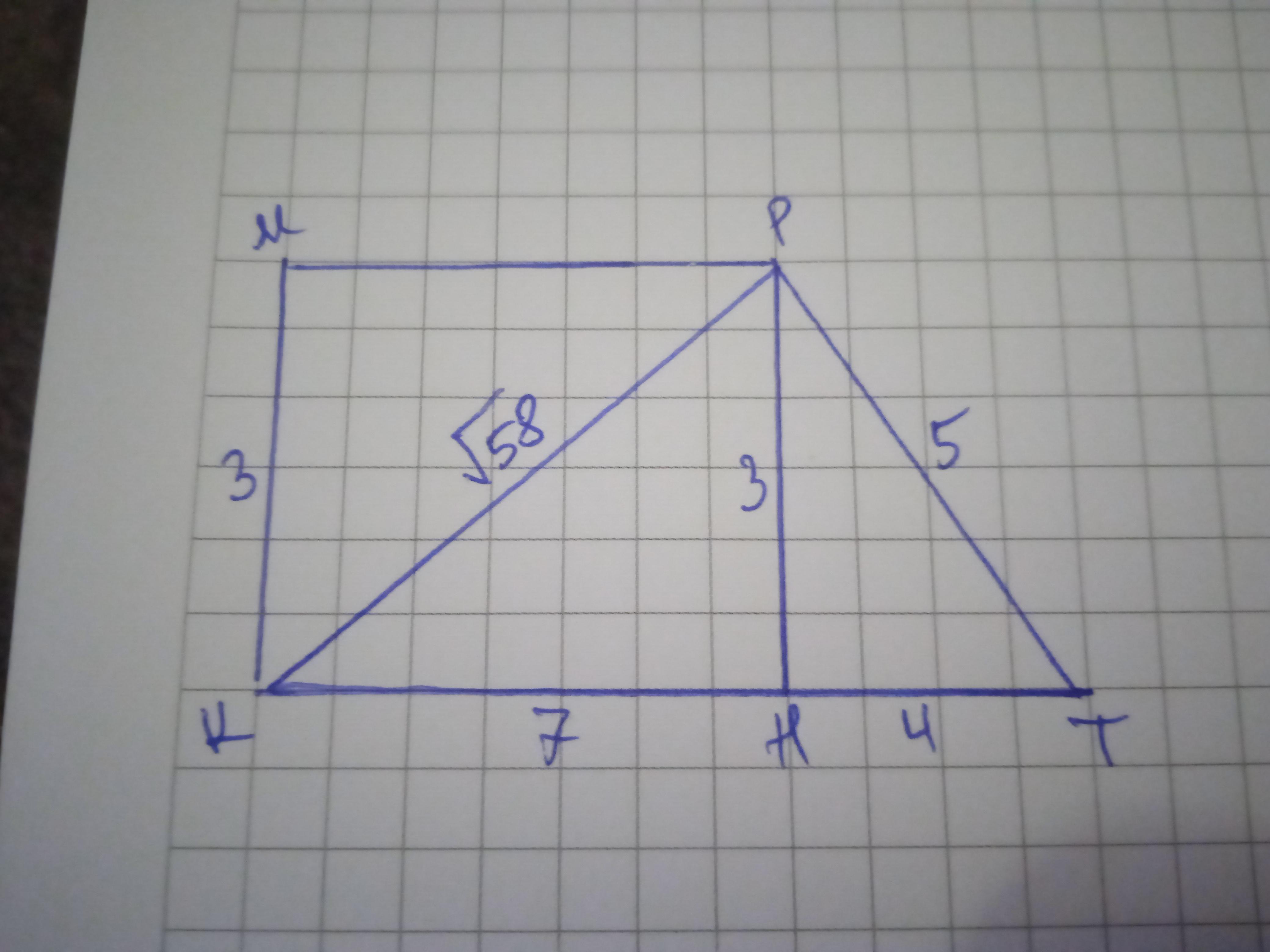 Р=КМ+МР+РТ+КТ=3+7+5+11=26 см
