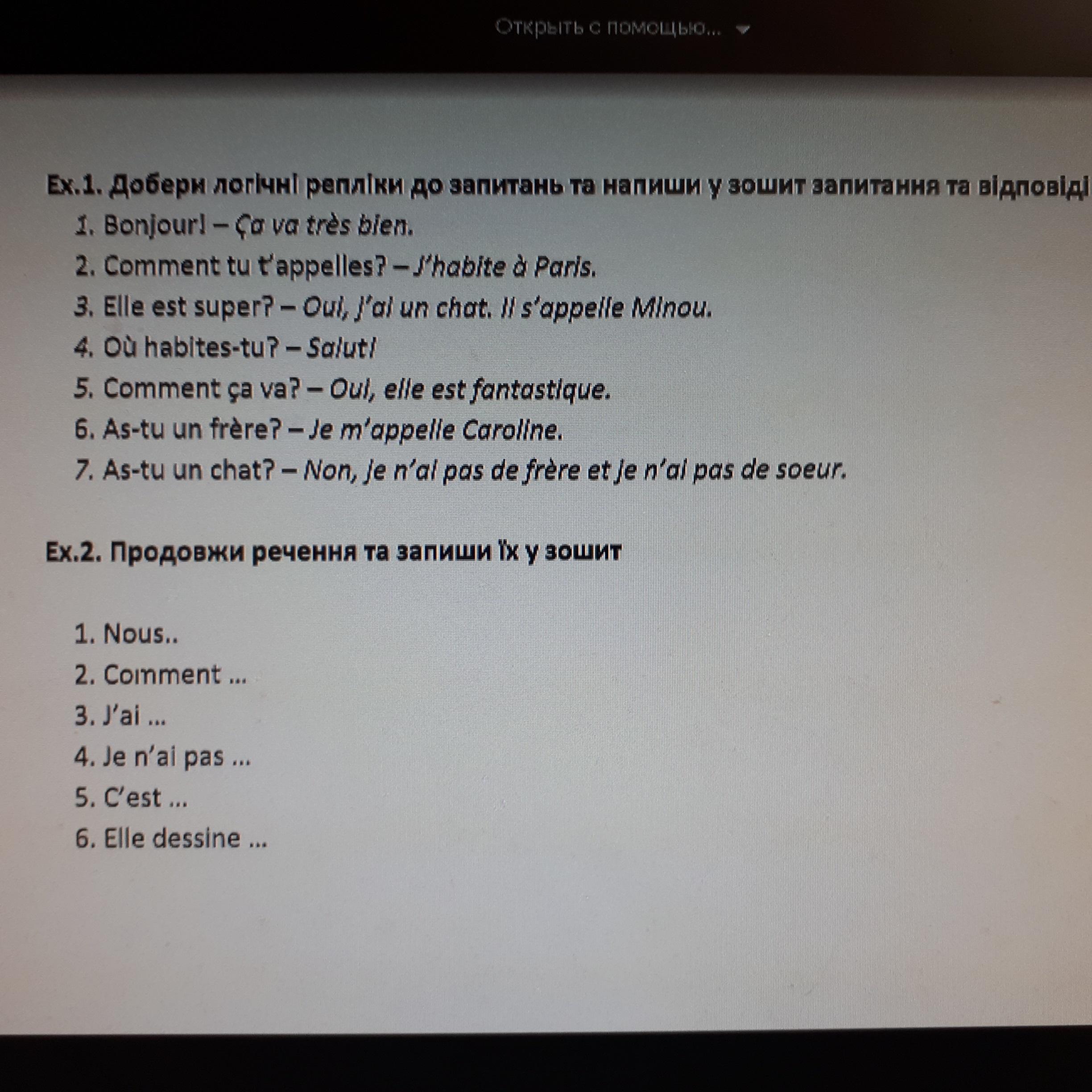 7. As-tu un chat? - Oul, j'ai un chat. Il s'appelle Minou.