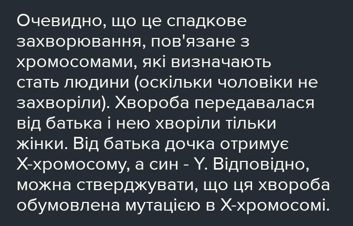 Явище нестачі Фосфору у крові людини може бути пов’язане із захворюванням на специфічну спадкову фор-му рахіту. Серед дітей від шлюбів 16 чоловіків, хворих цією формою рахіту, зі здоровими жінками народились 23доньки і 19 синів. У всіх доньок була нестача Фосфору в крові, а всі сини були здорові. Яка генетична природа цього захворювання?