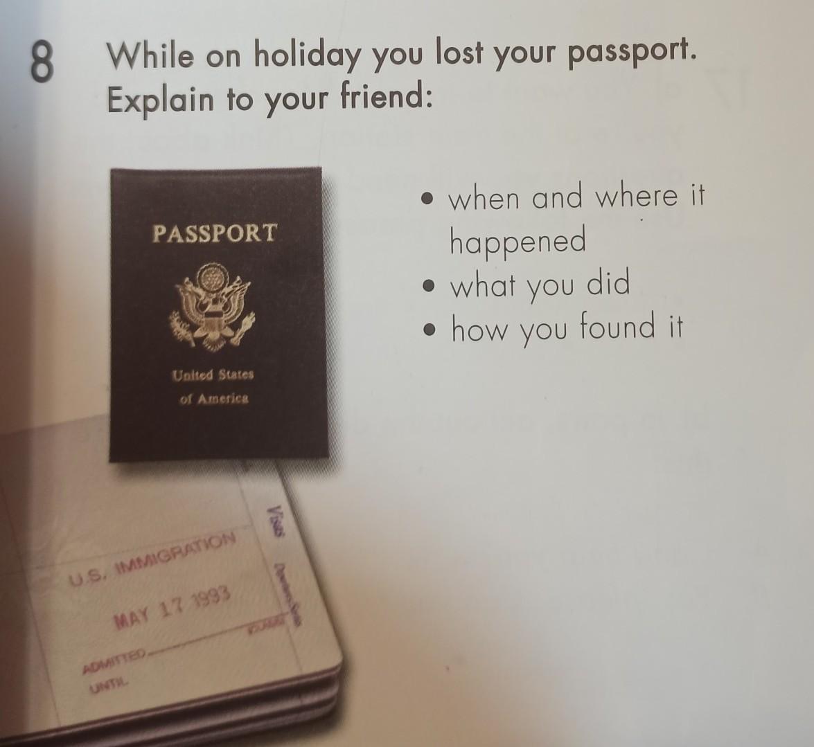 When I was in the airport before departure, I realized that I lost my passport! In this moment I was very confused and I didn't understand what I should do in this situation. Fortunately, my friend was in airport with me and he remembered that I left passport in a taxi! We found very quickly car in which we came and my passport ended up there. My happiness knew no bounds!