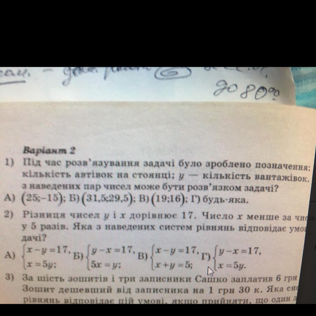 Під час розв’язування задачі було зроблено позначення:кількість автівок на стоянці; y-кількість вантажівок. з наведених пар чисел може бути розв‘язком задачі.