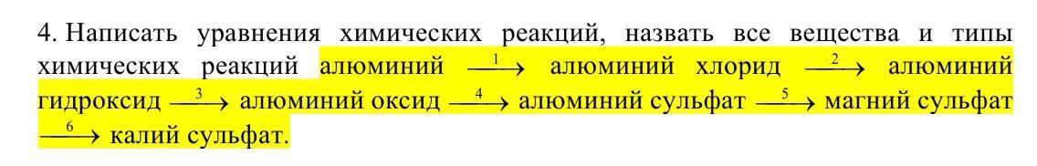 Здравствуйте. Помогите пожалуйста написать уравнения химических реакций, назвать все вещества и типы химических реакций.