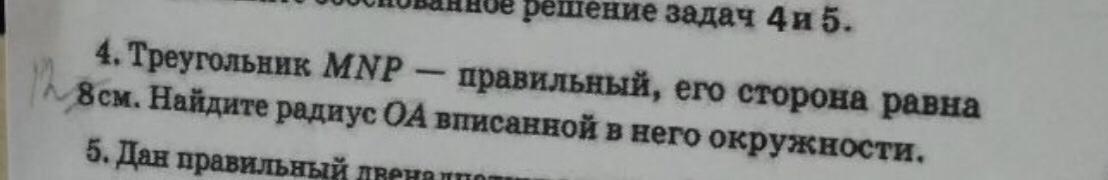 r = 1/3 длины медианы ∆, которая является биссектрисой и высотой,
