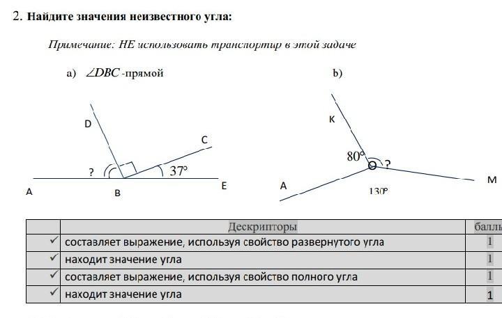 Примечание: НЕ использовать транспортир в этой задаче