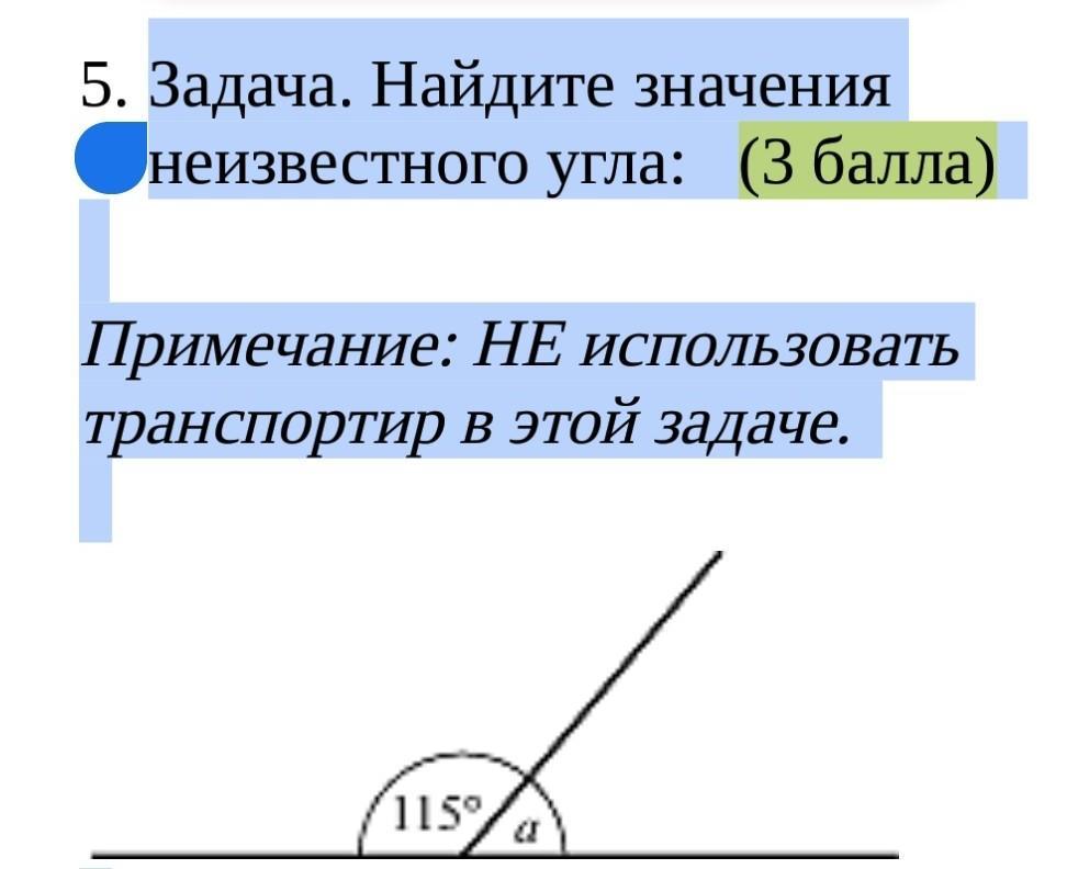 Здесь развёрнутый угол состоит из угла 115° и неизвестного угла.