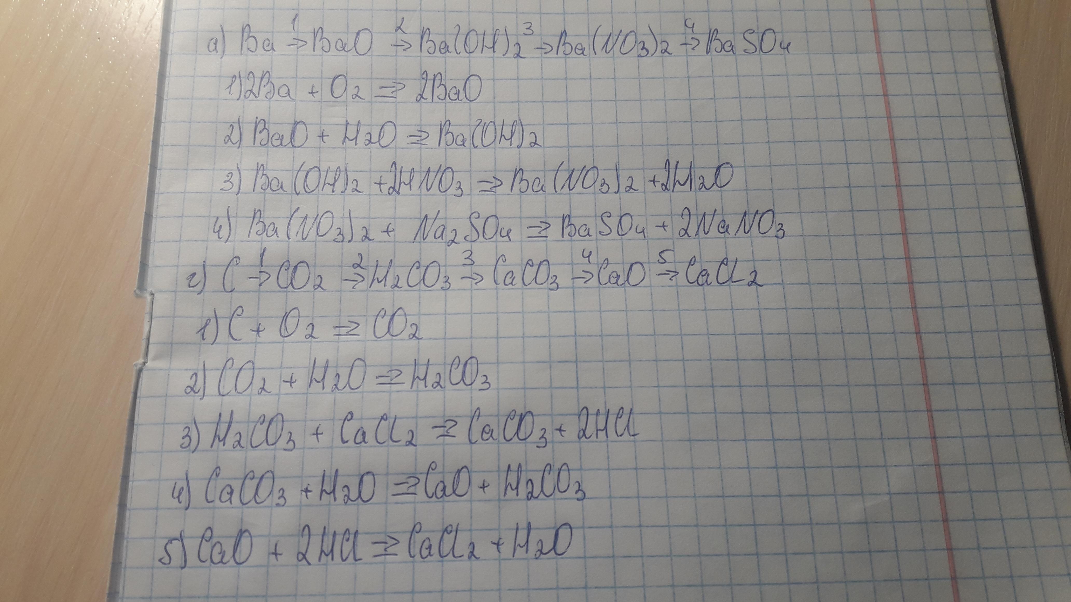 а) Ba - Bao - Ba(OH)2 - Ba(NO3)2- Baso4.