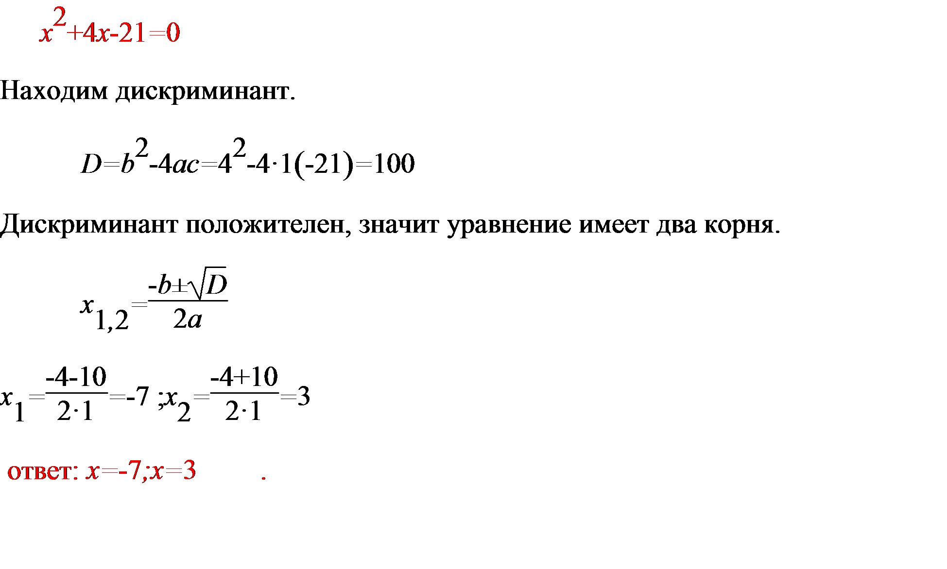Дискрименант-Д. Д=4*4+21*4=100