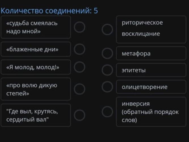 1-Метафора ,2 эпитет 3 риторичесоке описание,4инверсия 5олицктворение