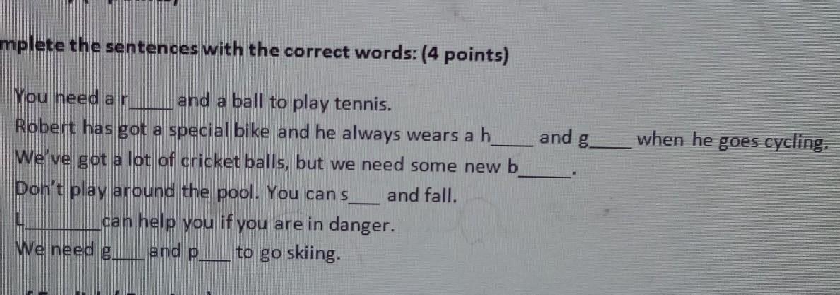 1. Complete the sentences with the correct words: (4 points)