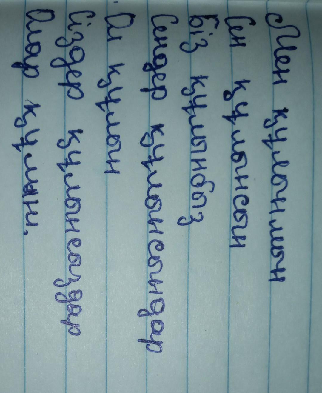 Проспрягать слова: Мен ұлыңмын, Мен құлынмын.