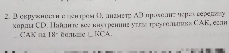 Диаметр, проведённый через середину хорды, перпендикулярен к ней.⇒ΔСАК-прямоугольный