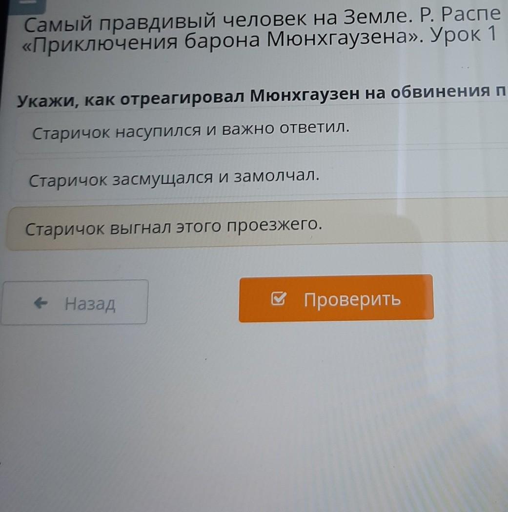 Укажи, как отреагировал Мюнхгаузен на обвинения проезжего.