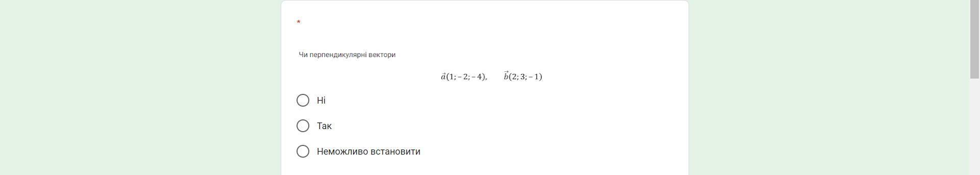 Якщо вектори перпендикулярні, то їхній скалярний добуток дорівнює нулю.