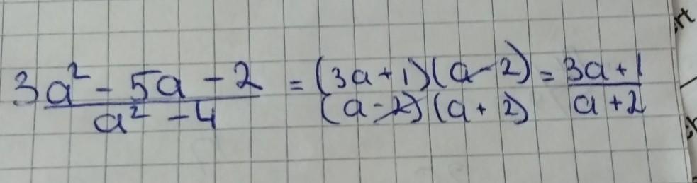 2) Скоротіть дріб (3а2-5а-2)/а2-4
