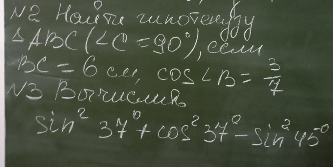 1) ВС/АВ= Cos∠B ⇒ гипотенуза AB= BC/Cos∠B = 6 : 3/7=14 (см)