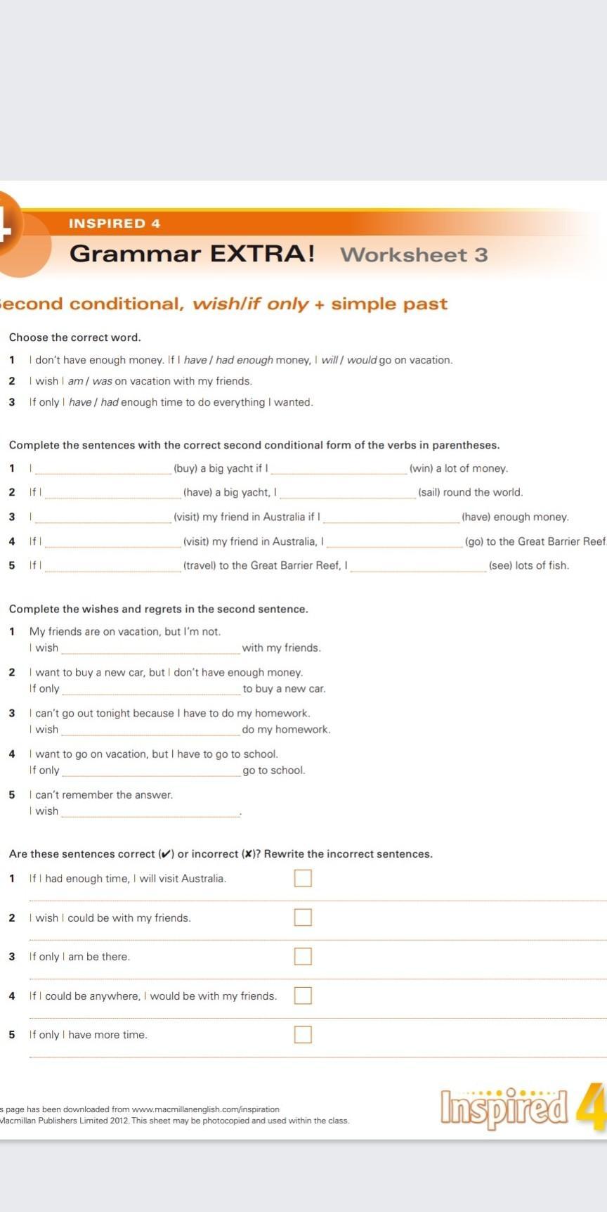 3. 1) I wish I was on vacation with my friends.