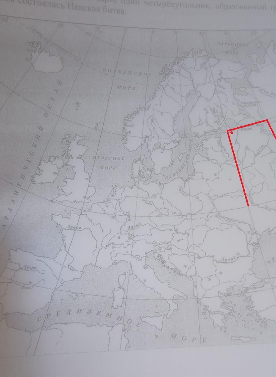 Заштрехуйте на контурной карте один четырехугольник образованый градусной сеткой в котором состоялась Невская битва